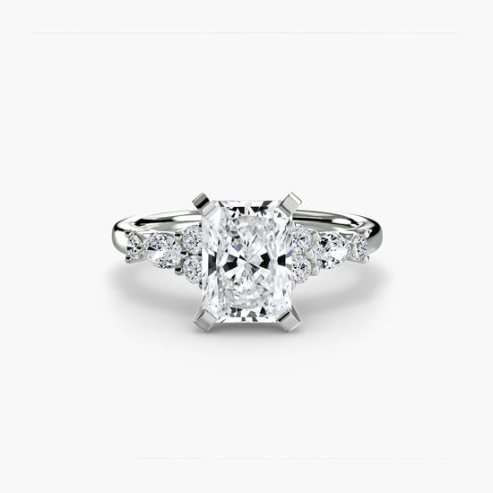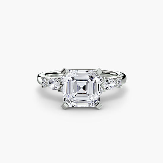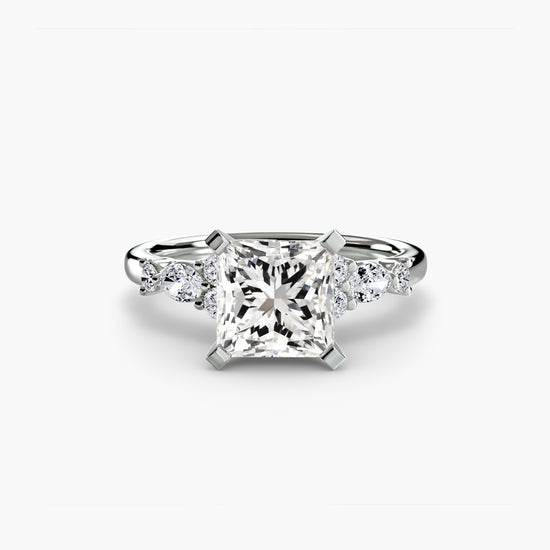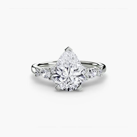 Designed with side stones that gracefully complement the center stone, this ring strikes a balance between classic elegance and added brilliance. Perfect for those who want a refined look with just the right amount of sparkle.